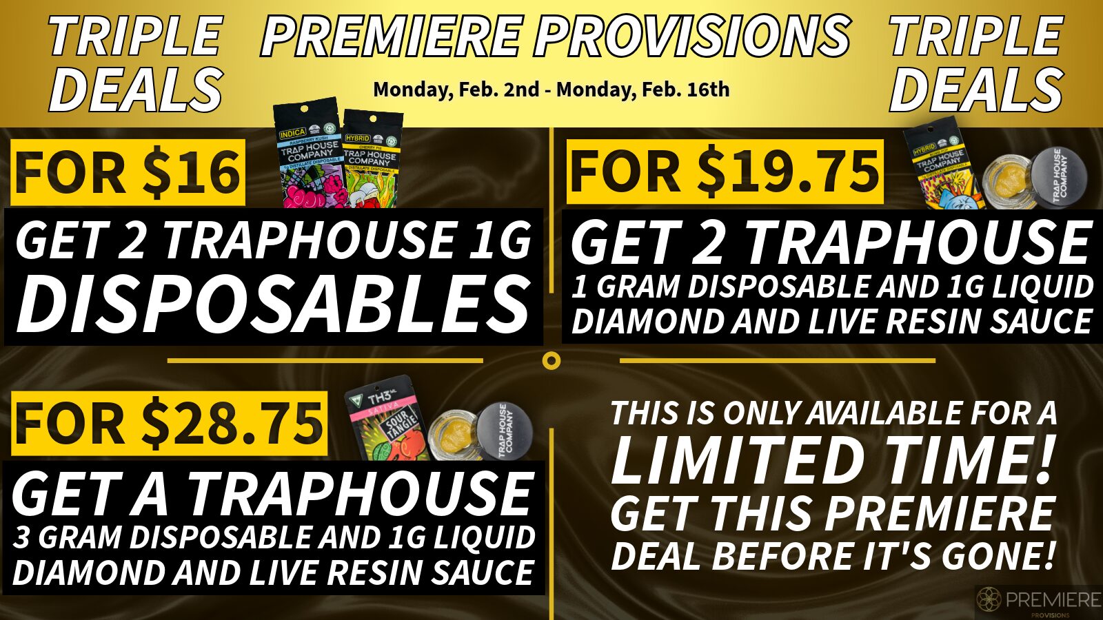 DO NOT miss our $3-8th, and $12.99-Oz Deals. Join Here to be alerted!